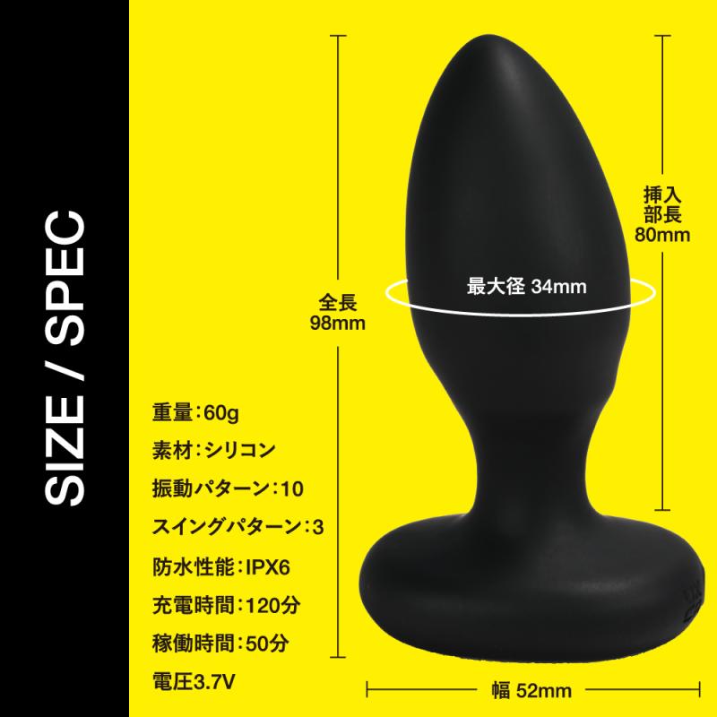 スイングと振動機能が付いた シリコンアナルプラグです。 2024/3/11発売 2024/7/1 価格改定 1890→1990(税別) | |