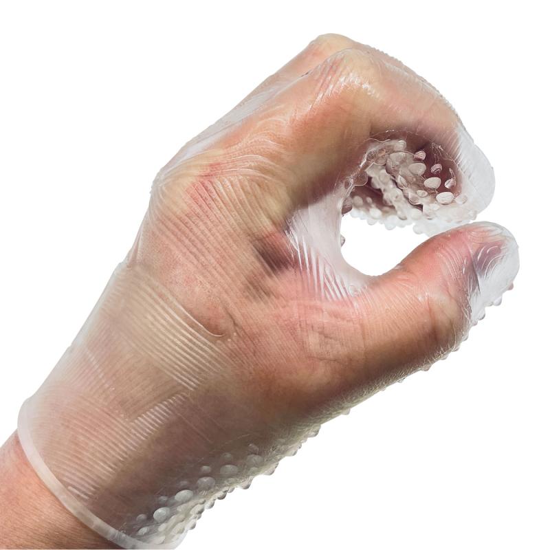 シリコーン製の透明グローブです。 イボイボ面とヒダヒダ面の両面タイプ。 2024/3/11掲載 | |