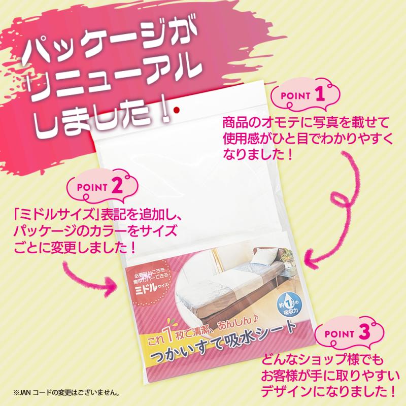 | 商品名 | つかいすて吸水シート (ミドルサイズ) |